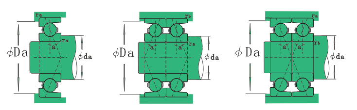 单列角接触球轴承具有接触角,所以适用于承受一个方向的负荷,结构上承受轴向负荷后产生轴向分力,或成对使用两个方向的负荷。将两个轴承对置使用,或两个以上成对使用, 可承受两个方向的受力。